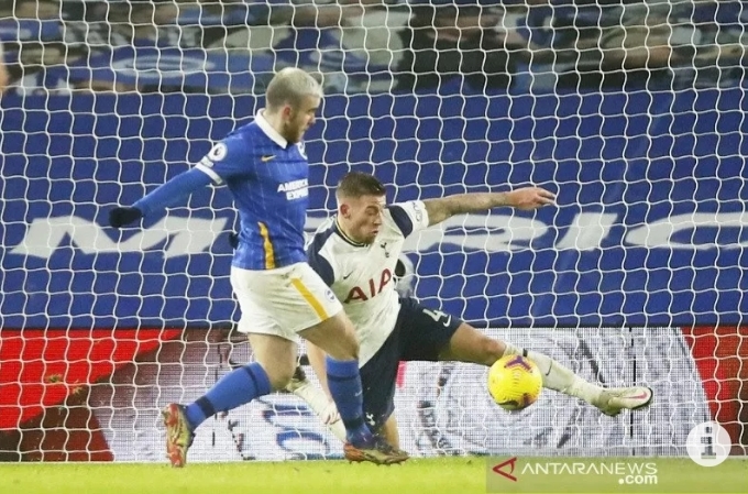BRIGHTON–Tottenham Hotspur tersungkur di markas Brighton & Hove Albion saat menelan kekalahan 0-1 dari tuan rumah dalam laga penutup rangkaian pekan ke-21 Liga Inggris di Stadion Amex, Brighton, Inggris, Minggu waktu setempat atau Senin WIB.