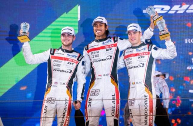 JAKARTA–Tiga pebalap tim Jagonya Ayam Sean Gelael, Tom Blomqvist, dan Stoffel Vandoorne tampil gemilang pada balapan FIA WEC di Sirkuit Sakhir, Bahrain, Sabtu (30/10).