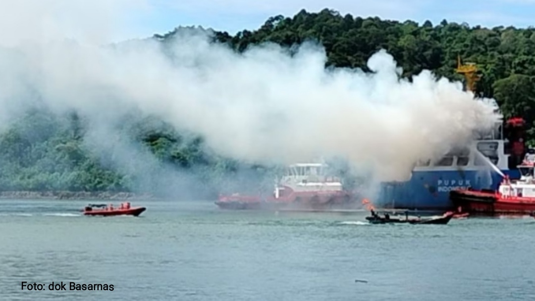 “Kapal Soemantri Brodjonegoro dengan muatan pupuk terbakar dan saat masih dilakukan upaya pemadaman oleh petugas,” katanya, Rabu (1/12/2021) pagi.