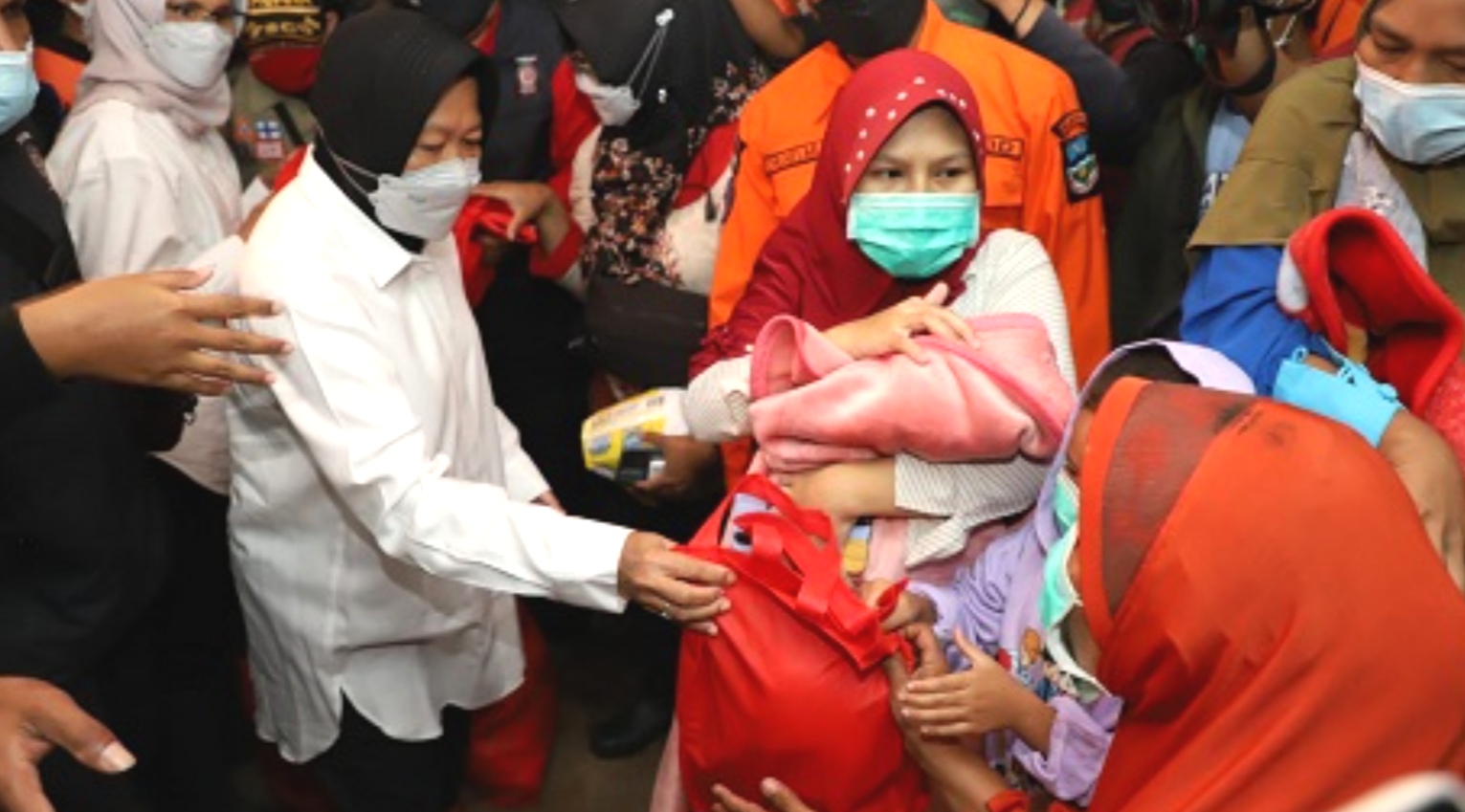 Mensos Risma memberikan bantuan paket sembako, hingga alat sekolah bagi para penyintas bencana.
