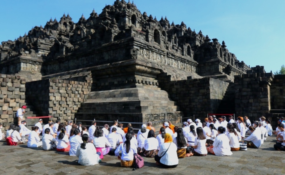 Di hadapan ratusan umat Buddha, Banthe Dittishampanno menyampaikan bahwa Borobudur sebagai candi yang memuat nilai-nilai agama dan pusat pemujaan masa lalu.
