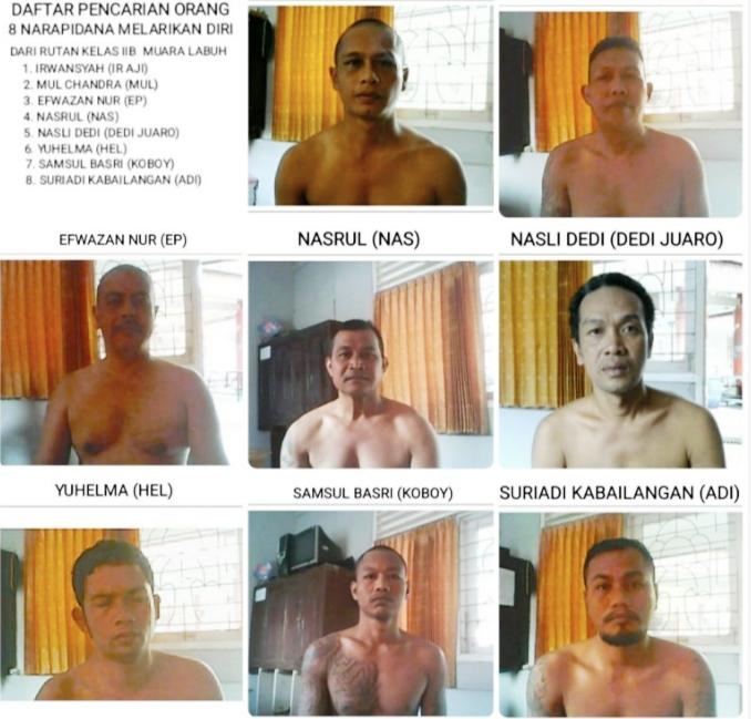 Inilah data 8 Napi yang kabur saat tahanan lain dan petugas melaksanakan salat tarawih: