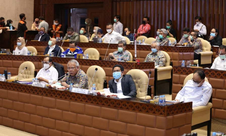 Menteri PUPR Basuki Hadimuljono dalam Rapat Kerja dengan Komisi V DPR RI membahas Rencana Kerja Anggaran Kementerian/Lembaga (RKA K/L) dalam nota keuangan RAPBN Tahun Anggaran 2021. RKA dipimpin Ketua Komisi V Lasarus, Rabu, (2/9).