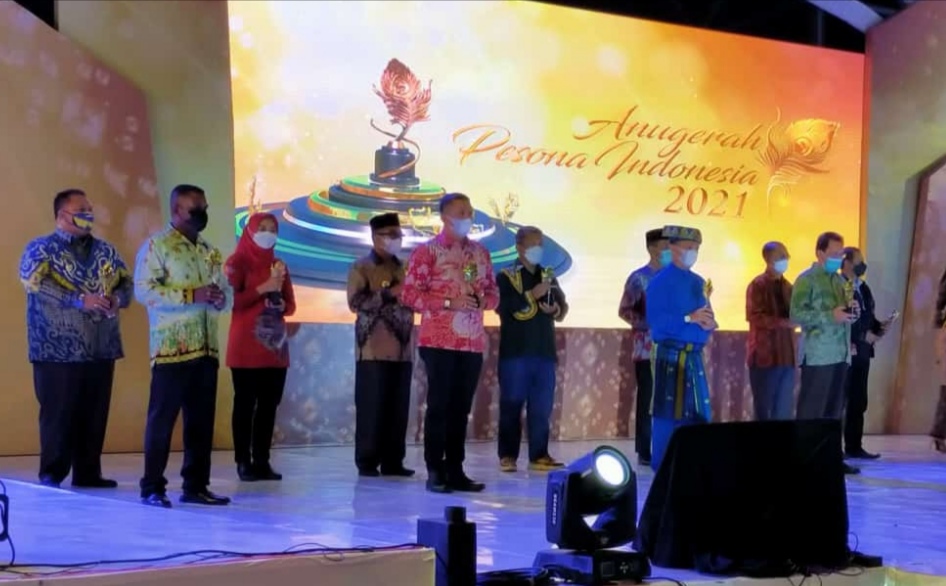 Penghargaan diterima Bupati Demak Eisti’anah, pada malam Anugerah Pesona Indonesia 2021, di Stabel Berkuda, Sekayu, Musi Banyuasin, Selasa (30/11/2021).