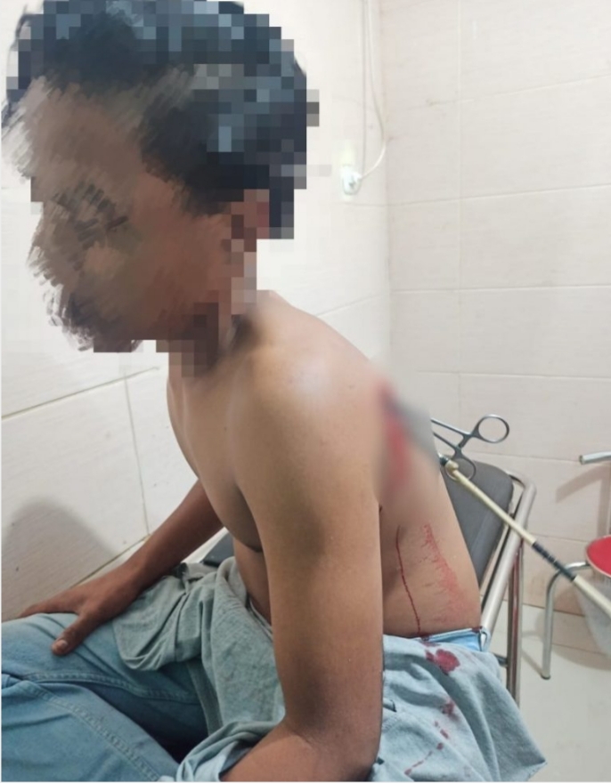 Ia harus dilarikan ke rumah sakit setelah tertancap anak panah di punggung bagian atas. Anak panah itu diduga dilepas orang tak dikenal (OTK).