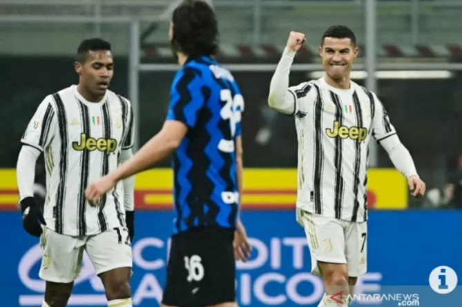 MILAN–Dua gol yang diukir Cristiano Ronaldo mengamankan kemenangan 2-1 Juventus atas Inter Milan pada pertandingan leg pertama semifinal Coppa Italia di Giuseppe Meazza, Milan, Rabu dinihari WIB.
