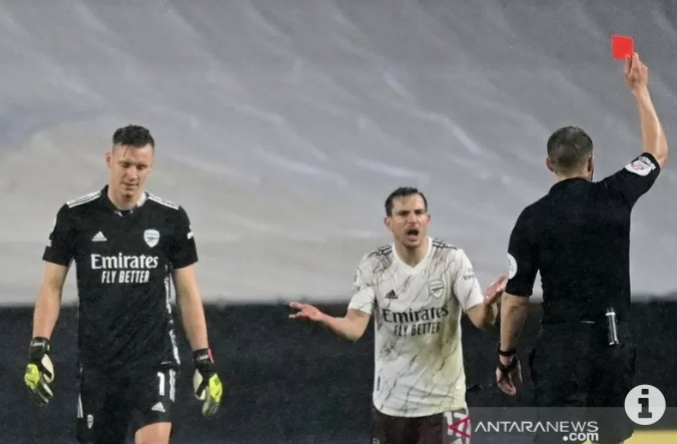 Arsenal bertambah sulit untuk bangkit ketika kiper mereka Bernd Leno juga mendapatkan kartu merah pada menit ke-72 sehingga menghentikan perjalanan tujuh laga tak pernah tim Mikel Arteta.