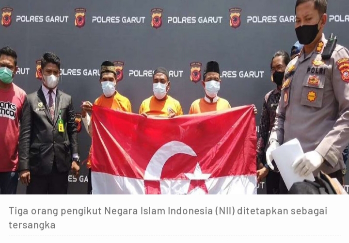 Dalam rilis tersangka di Mako Polres Garut, Kamis, tiga tersangka dihadirkan berbaju tahanan. Polisi pun memperlihatkan barang bukti yang mengiringi penangkapan mereka, salah satunya bendera merah putih dengan bulan dan bintang di tengah yang merupakan bendera NII.