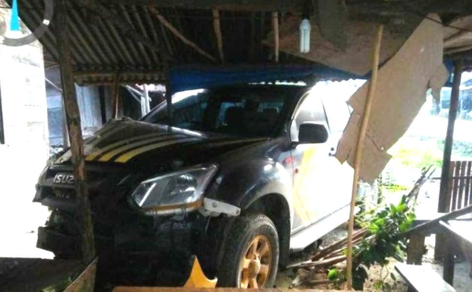 Akhirnya mobil menabrak teras depan rumah warga tak jauh dari lokasi kejadian.