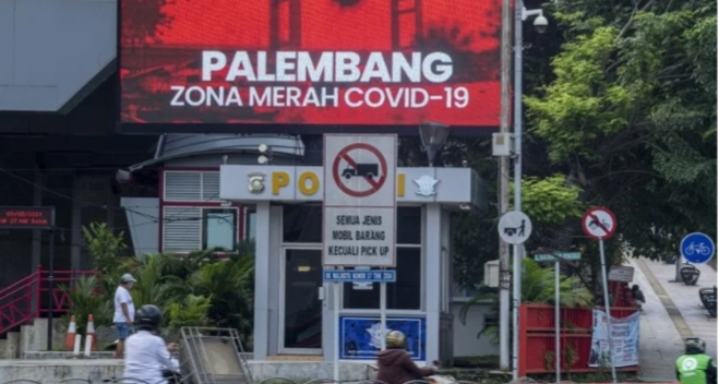 Data Dinas Kesehatan setempat menunjukkan 16 dari total 18 kecamatan di Palembang berstatus zona merah. Sementara satu kecamatan berstatus zona kuning dan satu kecamatan lain tergolong zona oranye penyebaran Covid-19.
