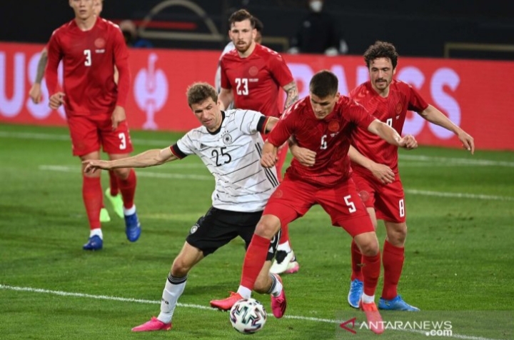 JAKARTA–Tendangan pemain Timnas Jerman dua kali membentur tiang gawang dan menyia-nyiakan banyak peluang ketika bermain seri 1-1 dalam laga pemanasan menjelang Euro 2020 melawan Denmark, Kamis dinihari tadi.