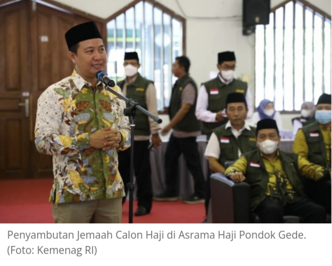JAKARTA–Kloter Pertama Embarkasi Jakarta, Jumat (3/6/2022), mulai masuk Asrama Haji Pondok Gede Jakarta. Kedatangan mereka disambut Dirjen Penyelenggaraan Haji dan Umrah, Hilman Latif.