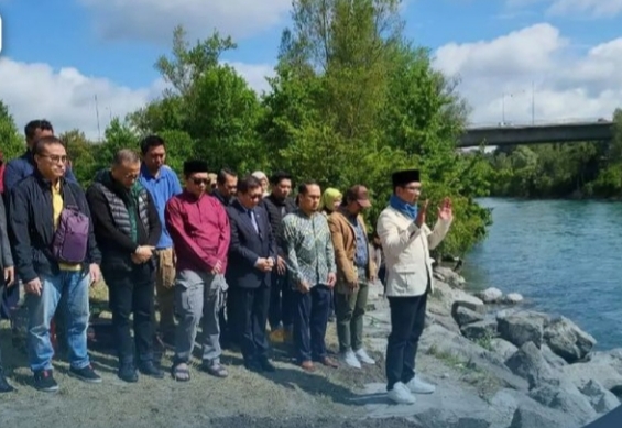 Menjelang terbang ke Indonesia, Ridwan Kamil juga melakukan shalat gaib untuk Eril di tepi Sungai Aare di Bern, Swiss. (*)