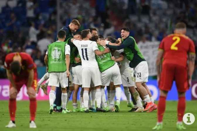 Italia memecahkan kebuntuan pada menit ke-31 ketika Barella meneruskan umpan Marco Verratti dengan mengelabui Thorgan Hazard sebelum melepaskan tendangan kencang yang tak bisa dicegah penjaga gawang Thibaut Courtois.