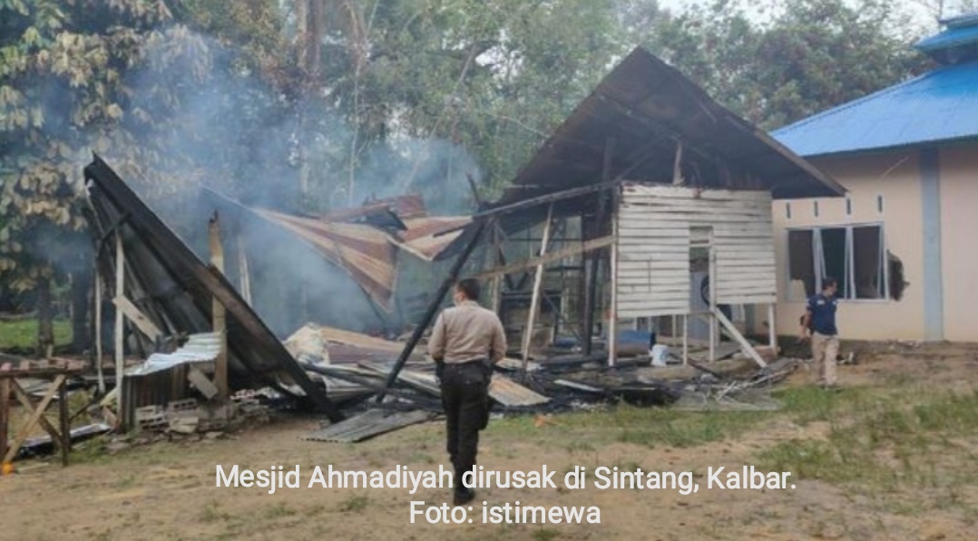 SINTANG – Massa menyerang, merusak dan membakar bangunan dan masjid Jamaah Ahmadiyah di Sintang, Kalimantan Barat, Jumat (3/9/2021)