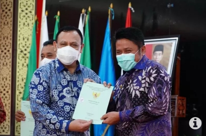 Gubernur Sumsel Herman Deru dan Ketua KPK Firli Bahuri menandatangani MoU di Griya Agung Palembang, Kamis (3/12/2020), meliputi perjanjian kerja sama pemanfaatan kawasan Kenten antara Pemprov Sumsel dan PT Pertamina (Persero).