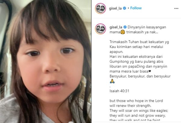 Hal itu terlihat dalam unggahan Gisel di akun Instagramya, Senin (4/1). Berikut sepenggal lirik lagu yang dinyanyikan Gempi:
