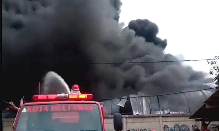 Dari video amatir warga, tergambar asap hitam pekat membumbung tinggi. Belum diketahui, apa, penyebab kebakaran dan korban.