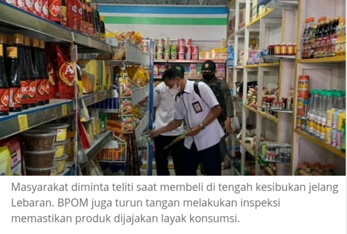 Apalagi menjelang Lebaran, di tengah kepadatan aktivitas masyarakat di pasar, toko untuk mempersiapkan lebaran kerap menjadi celah keteledoran dalam membeli satu produk. Diminta untuk memperhatikan kemasan terutama berbahan kaleng,dan memeriksa tanggal kadaluwarsa. (as/beb)