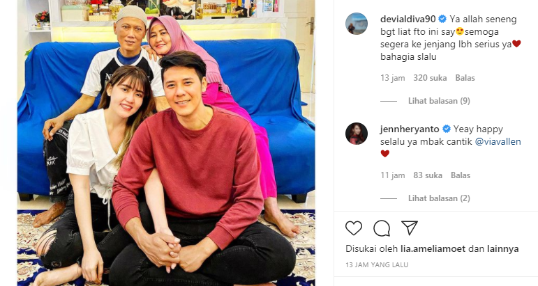 Dalam foto, terlihat tangan Via digandeng erat oleh sang kekasih sementara kedua orang tuanya duduk di atas sofa di belakang Via dan Chevra sembari menunjukkan keromantisan seolah tak mau kalah.