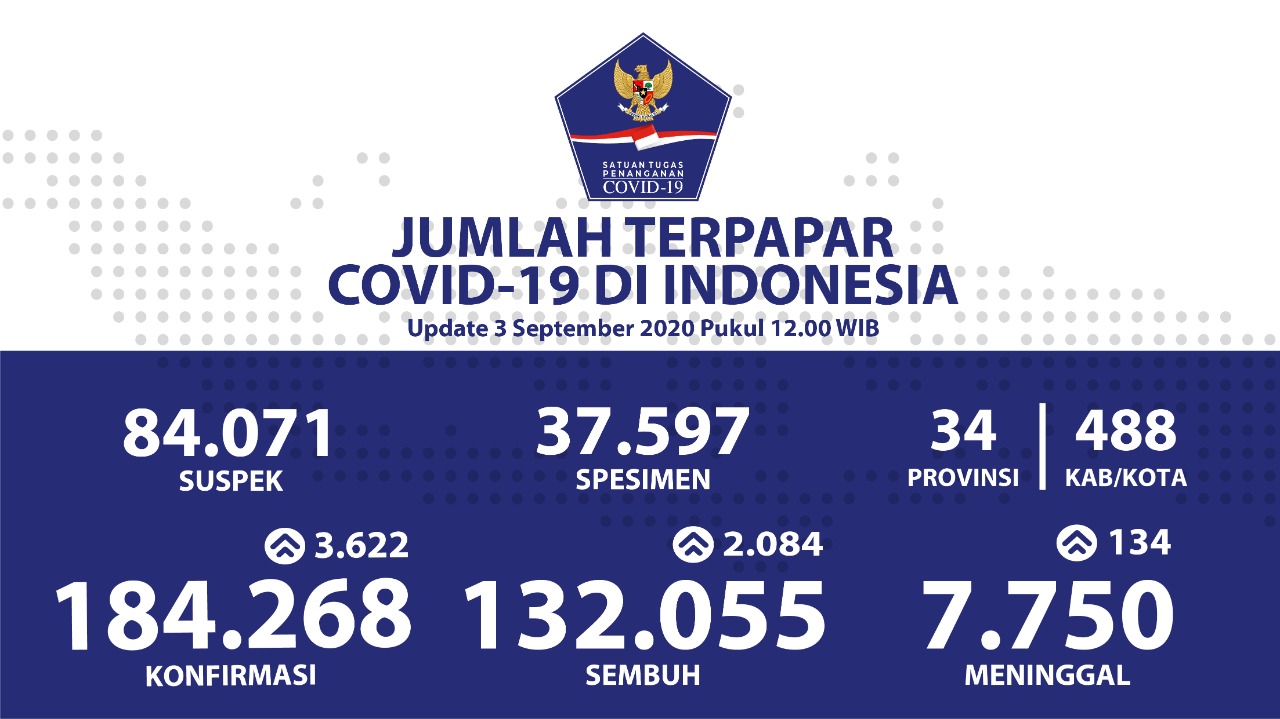 Ia menyoroti 4 provinsi yang menyumbang 56% dari jumlah kumulatif kasus Covid-19 secara nasional. Diantaranya DKI Jakarta, Jawa Timur, Jawa Tengah dan Jawa Barat. Per 3 September 2020, Wiku menyebut ada penambahan kasus positif baru yang cukup signifikan, sebanyak 3.622 kasus.