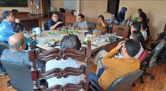 Rapat koordinasi persiapan Rapimnas SMSI di Sekretariat SMSI, Jalan Veteran, Jakarta, Selasa (3/10/2023).