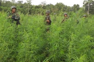 LHOKSUKON – Komando Distrik Militer (Kodim) 0103, Polri dan Badan Narkotika Nasional Kabupaten (BNNK) Kabupaten Aceh Utara, Aceh, pada Selasa (3/11/2020) memusnahkan lebih kurang 5 hektare ladang ganja di kawasan perbukitan Gampong –desa– Teupin Riusep, Kecamatan Sawang.