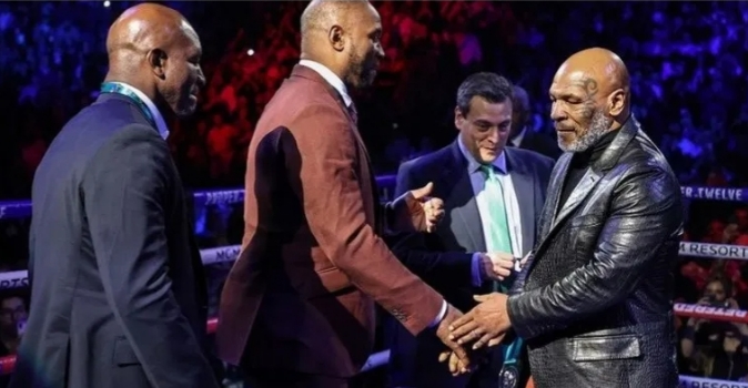 Melawan Roy Jones Jr merupakan penampilan pertama Mike Tyson dalam ring tinju setelah menyatakan pensiun pada 2005. Mike Tyson yang sudah berusia 54 tahun waktu itu berhasil bertahan sampai delapan ronde. Meksipun akhirnya harus menerima hasil imbang.