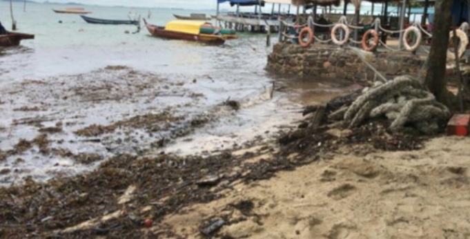 Warga menduga, tumpahan minyak itu berasal dari salah satu kapal tanker yang sudah lama sandar di perbatasan tak jauh dari Pulau Putri.