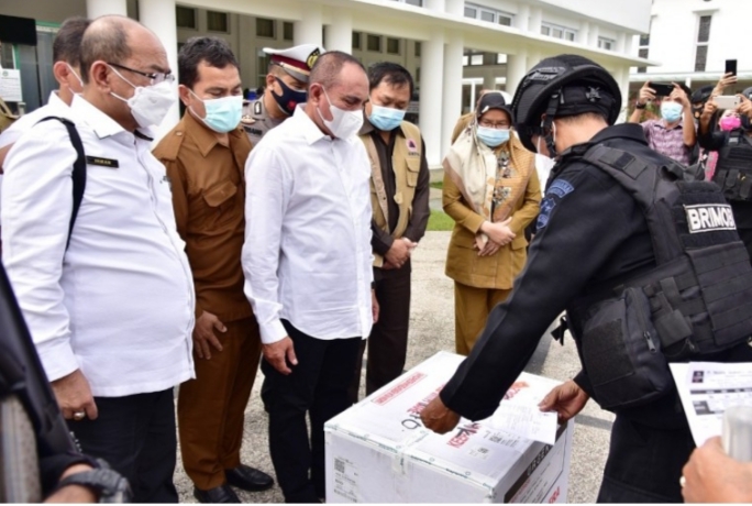 Gubernur Edy Rahmayadi didampingi Sekdaprov, Kadiskes, Kadis Kominfo, LO BNPB dan lainnya langsung menerima sebanyak 21 koli atau 40.000 dosis hari ini pukul10.00 di Posko C19 Provsu. Vaksin akan didistribusikan menunggu petunjuk dari Kementerian Kesehatan RI.