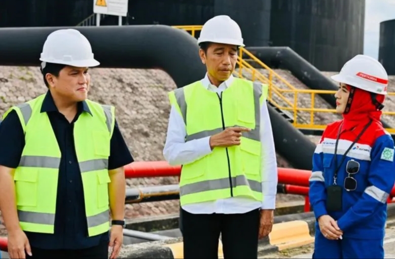 Presiden Joko Widodo menanggapi pertanyaan awak media seusai meninjau produksi migas PT Pertamina Hulu Rokan Dumai. (Tangkapan layar video)