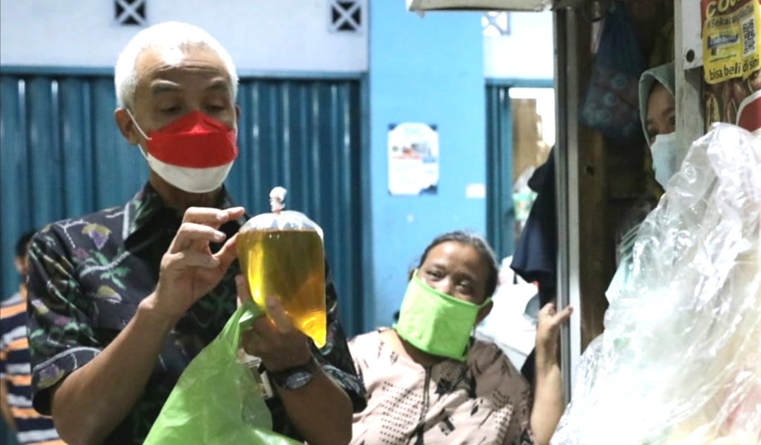 Ganjar bahkan membuktikan sendiri dengan membeli minyak goreng pada salah satu pedagang. Ia pun harus mengeluarkan uang Rp20 ribu untuk seliter minyak goreng curah.