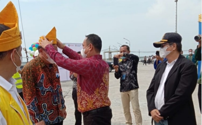 Acara pelepasan KM Semangat Nelayan sebagai pengapalan perdana ekspor Produk UMKM ke Malaysia ini digelar, Jumat (4/6/2021), di Pelabuhan Kuala Tanjung.