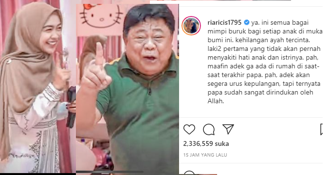 “Pah, maafin adek ga ada di rumah di saat-saat terakhir papa,” tulis Ria Ricis dikutip dari akun Instagram @riaricis1795, Sabtu (5/6/2021).