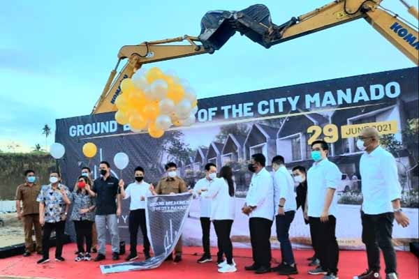 MANADO—Walikota Manado Andrei Angouw meresmikan dimulainya pembangunan perumahan The City Manado di Jl Ring Road 1, Paal Dua, Manado, Sulawrsi Utara, Selasa (29/6/2021).