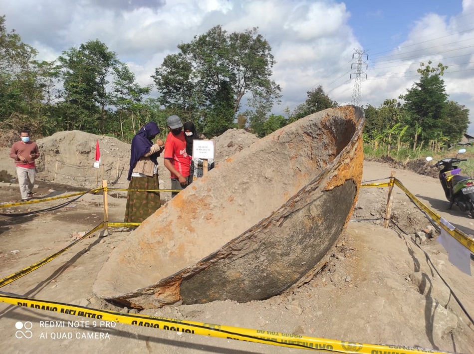 BANTUL–Lokasi penemuan wajan raksasa di Dusun Kretek Lor, Kelurahan Jambidan, Kecamatan Banguntapan, Kabupaten Bantul, kini menjadi tujuan wisata baru di kawasan Daerah Istimewa Yogyakarta. Pada Sabtu (4/9/2021), sejak pagi hari warga berduyun-duyun mendatangi tempat yang rencananya akan dibangun lapangan bermain anak-anak.