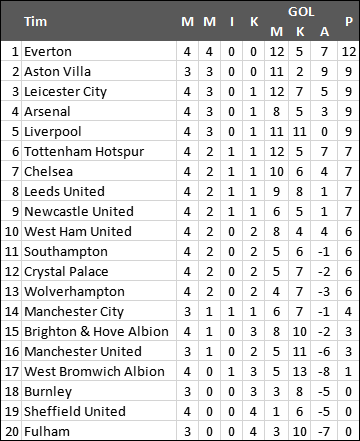 Kemenangan itu membuat Everton mengumpulkan 12 poin penuh dan menggusur Leicester City (9) dan Liverpool (9) yang main sehari berselang.