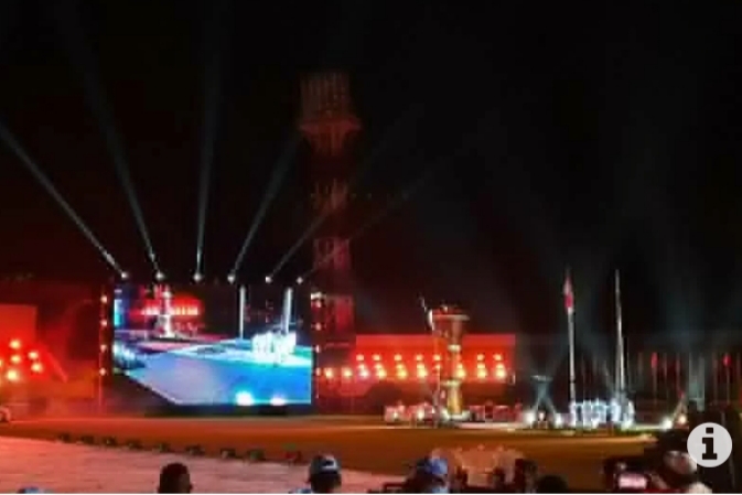 Kemudian, tidak berhenti sampai di situ, kemeriahan kembali muncul dari lampu-lampu drone yang mulai diterbangkan satu per satu oleh para pilotnya.