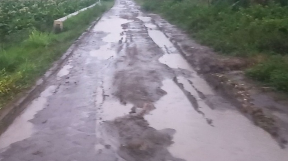 Kondisi jalan sangat memprihatinkan, berlumpur juga ditemukan banyak lubang dan bergelombang.