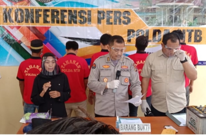 “Setelah melakukan penyelidikan dan serangkaian pemeriksaan, akhirnya lima orang terduga pelaku penganiayaan ini berhasil kami amankan pada hari Rabu tanggal 3 Februari 2021,” kata Direktur Reskrimum Polda NTB, Kombes Pol Hari Brata SIK, didampingi Kasubdit III Direskrimum Polda NTB Kompol Yasmara SIK, dan Kabid Humas Polda NTB Kombes Pol Artanto S.I.K saat menggelar jumpa pers, di Mako Polda NTB, Kamis (4/2/2021)