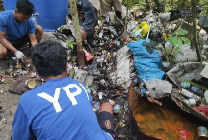 Pihak YPI bersama beberapa anggotanya yang baru saja mendapat mandat menjaga pulau, melakukan pembersihan.