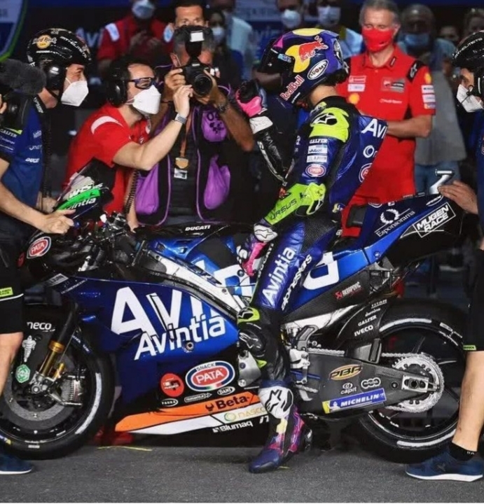 JAKARTA:- Enea Bastianini melakukan selebrasi kemenangan perdananya tba di kelas MotoGP setelah menjuarai balapan pembuka musim Grand Prix Qatar pada Minggu untuk tim Gresini Racing.