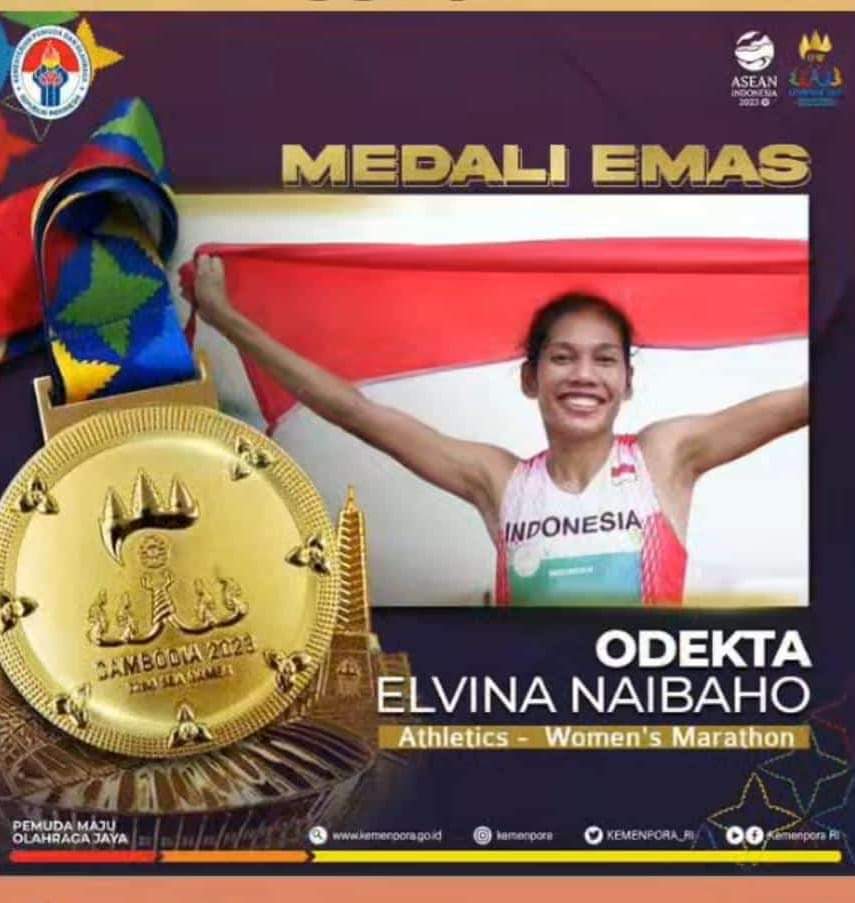 Odekta Elvina Naibaho yang juga Atlit yang dibina Badan Intelijen Negara Republik Indonesia (BIN RI), lahir di Soban, Sumatera Utara, 5 November 1991. Medali emas ketiga kali ini, diraih Indonesia dalam ajang internasional Sea Games dari nomor pertandingan marathon putri.