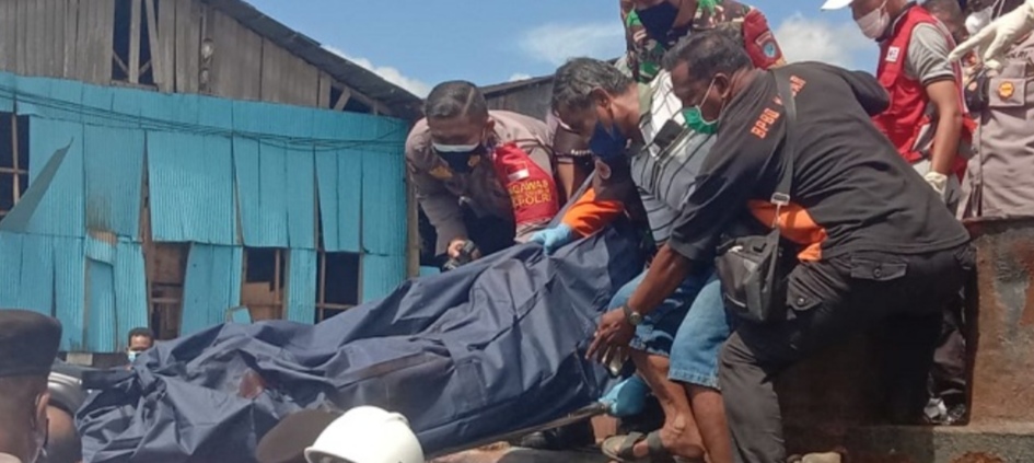 Sekitar kurang satu jam dilakukan pencarian tiba-tiba terlihat korban yang meninggal berada di sebelah tongkang yang meledak.