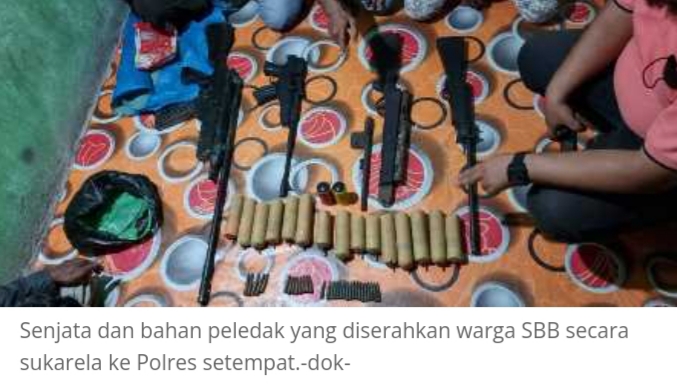 “Yang diserahkan berupa 4 pucuk senpi laras panjang rakitan, 15 buah bom pipa, 2 buah flasball, beserta amunisi jenis kaliber 5,56 sebanyak 18 butir, jenis 7,62 sejumlah 6 butir, dan jenis 6,5 sebanyak 8 butir,” ungkap Denny kepada info-ambon.com, grup Siberindo.co di Ambon, Rabu (6/7/2022).