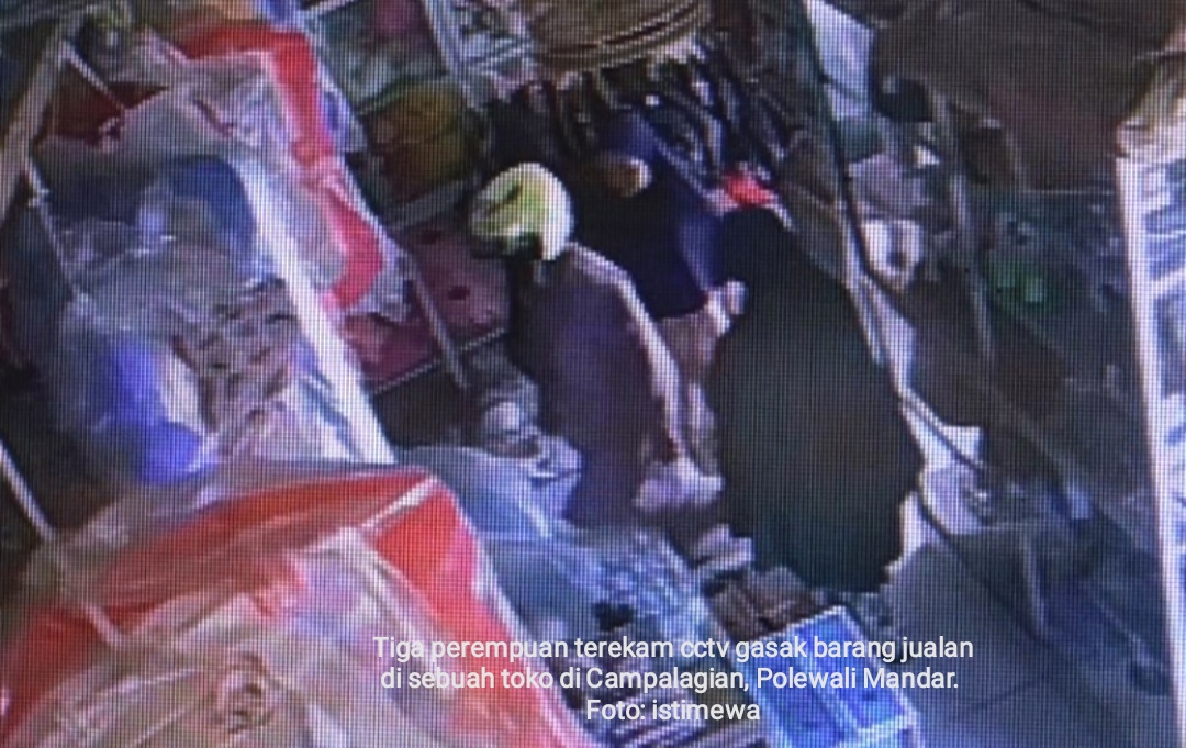 POLMAN– Aksi pencurian di sebuah toko di Kabupaten Polewali Mandar, Sulawesi Barat, terekam kamera pengawas CCTV (Closed Circuit Television). Pelakunya tiga orang, semuanya perempuan.