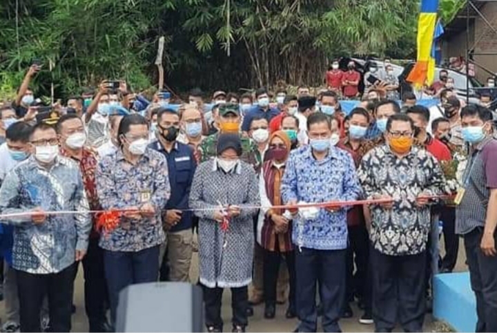 Puncak acara penyerahan hibah Jalan Bhakti SMSI dan 16 MCK dari Ketua Umum SMSI kepada Walikota Serang. Rangkaian acara diakhiri dengan peninjauan jalan dan MCK oleh Menteri Sosial Tri Rismaharini didampingi para undangan. (rls)