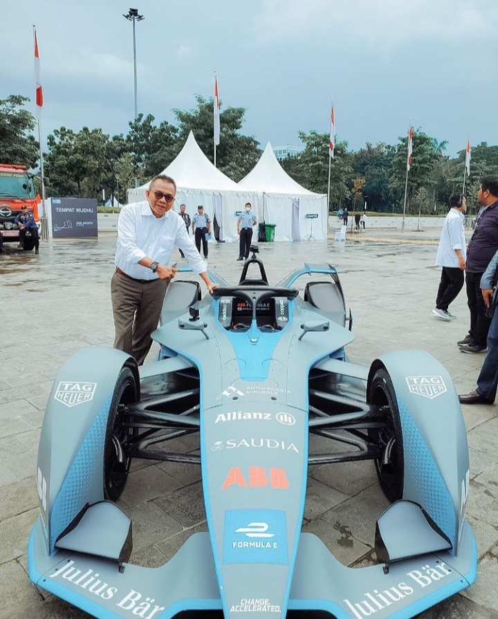 M Taufik berpose dengan mobil balap Formula E. (Instagram)
