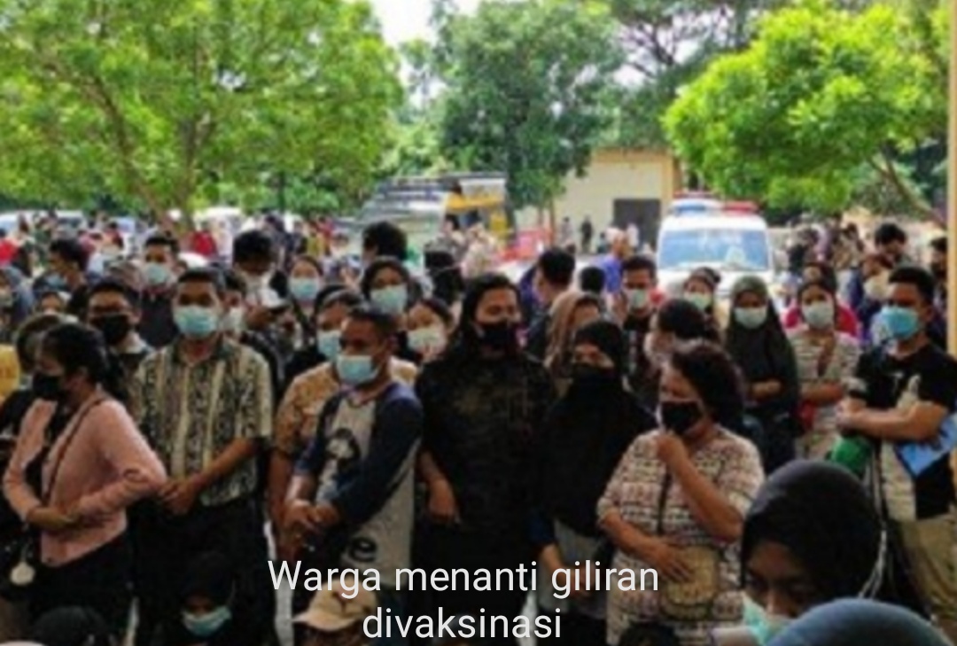 Diketahui, vaksinasi massal yang dilaksanakan di GOR Serbaguna Pancing menimbulkan kerumunan dan sempat ricuh pada Selasa (3/8/2021). (topmetro.news)
