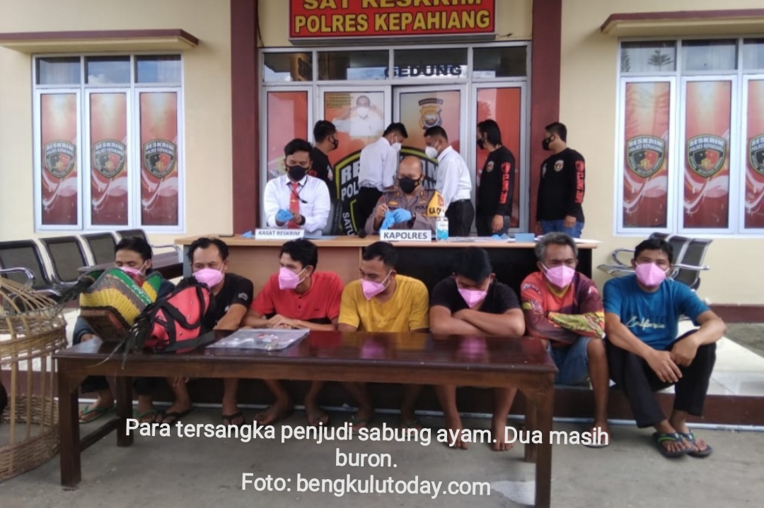 BENGKULU – Tim Elang Juvi Satreskrim Polres Kepahiang, Polda Bengkulu menggelandang tujuh orang yang sedang asyik bermain judi sabung ayam pada Minggu (1/8/21).